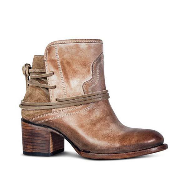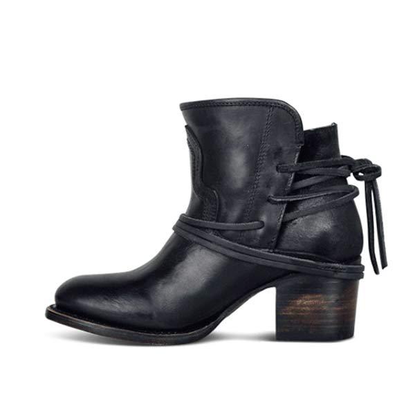 Women'S Vintage Lace Up Chunky Heel Booties